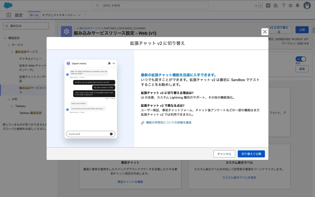 拡張チャット v1 と拡張チャット v2 の比較|Salesforce Help