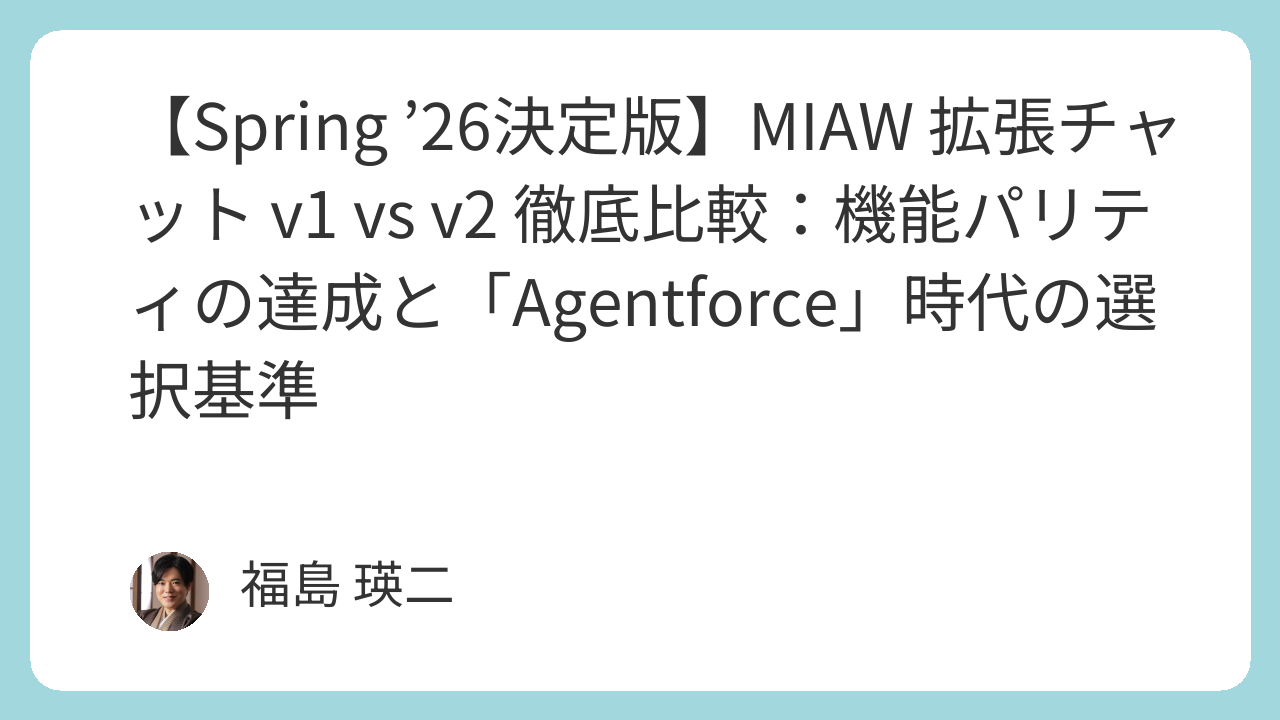 それ以外のすべての新規導入、および将来を見据えた改修において、v2が唯一の合理的選択肢です 。 Agentforceという新しい「頭脳」を活かすために、ぜひ最新の「身体(v2)」を用意してあげてください。