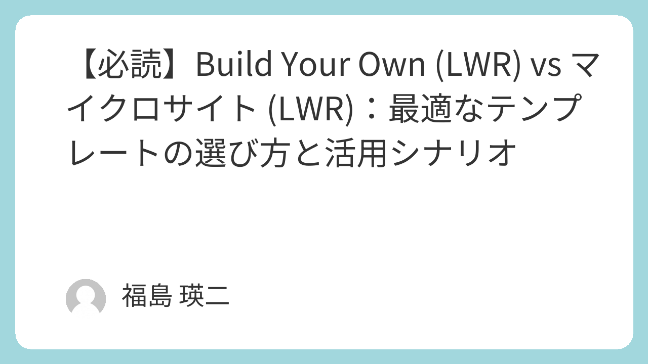 プロジェクトの要件定義の段階で、「誰に」「何を」「どの期間」提供するかを明確にすることで、最適なテンプレートを選択できます。LWRの高速なパフォーマンスを活かして、素晴らしいデジタル体験を構築しましょう。