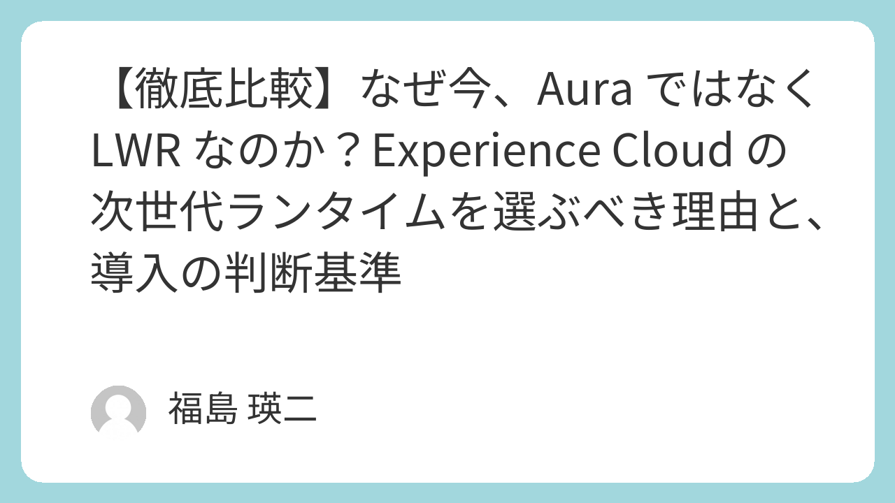 Experience Cloud でサイトを作る際、最初に直面する選択肢。「Aura サイト」にするか、「LWR サイト」にするか。 これまでの連載では LWR を前提に進めてきましたが、そもそもなぜ Salesforce はこの新しいランタイムを推し進めているのでしょうか?