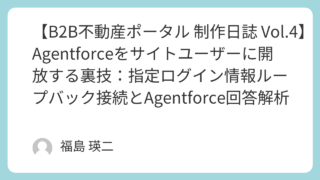 データ・AI連携 【B2B不動産ポータル 制作日誌 Vol.4】Agentforceをサイトユーザーに開放する裏技:指定ログイン情報ループバック接続とAgentforce回答解析
