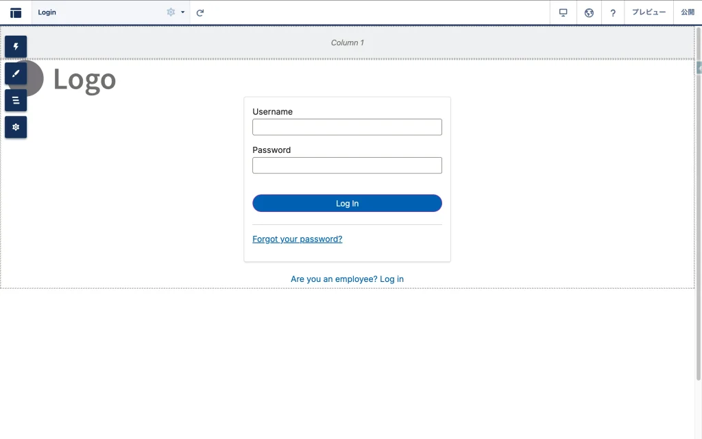 しかし、LWRサイトでは「ログイン画面も、ただのページの一つ」として扱われます。つまり、ホーム画面と同じように、ドラッグ&ドロップで自由にデザインできるのです!