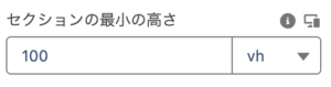 2. 「セクションの最小の高さ」を「100vh」にすると、縦幅いっぱいに表現できるのでおすすめです。