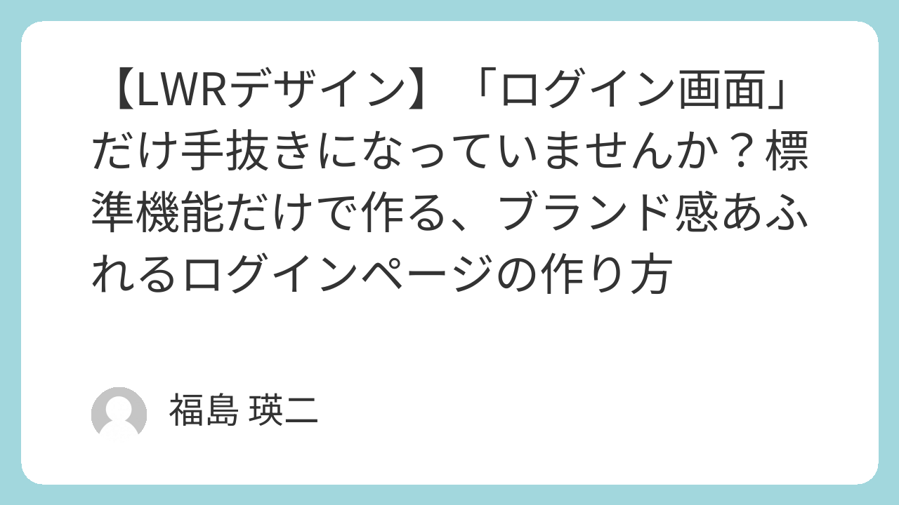 【LWRデザイン】「ログイン画面」だけ手抜きになっていませんか?標準機能だけで作る、ブランド感あふれるログインページの作り方