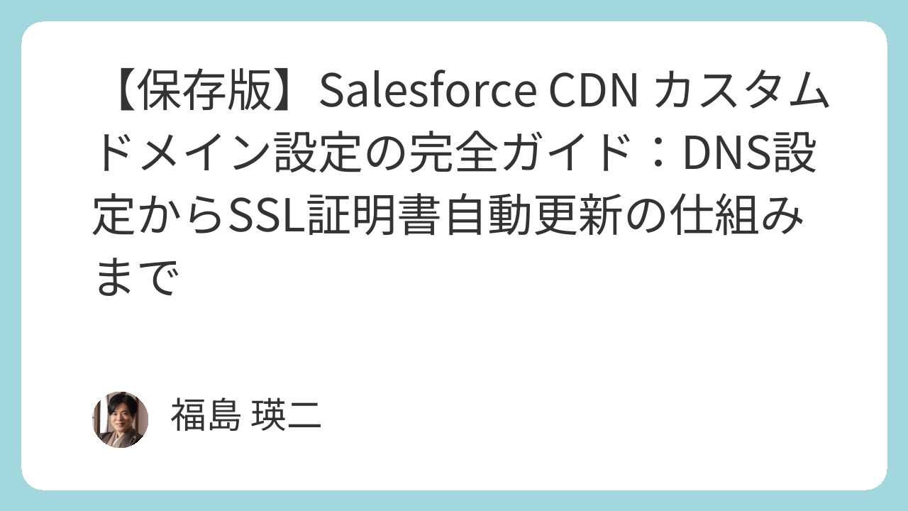 【保存版】Salesforce CDN カスタムドメイン設定の完全ガイド:DNS設定からSSL証明書自動更新の仕組みまで