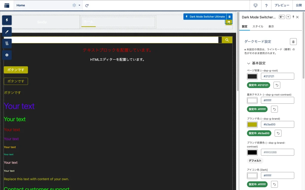 LWRサイトを細部までカスタマイズしようとすると、必然的に設定項目は増えていきます。 過去の記事で紹介した「Dark Mode Toggle」は、テキストや背景だけでなく、リストビューのヘッダー、ボタンの全ステート(Hover/Focus)、フォームの枠線など、60以上のCSS変数を制御する高機能コンポーネントです。