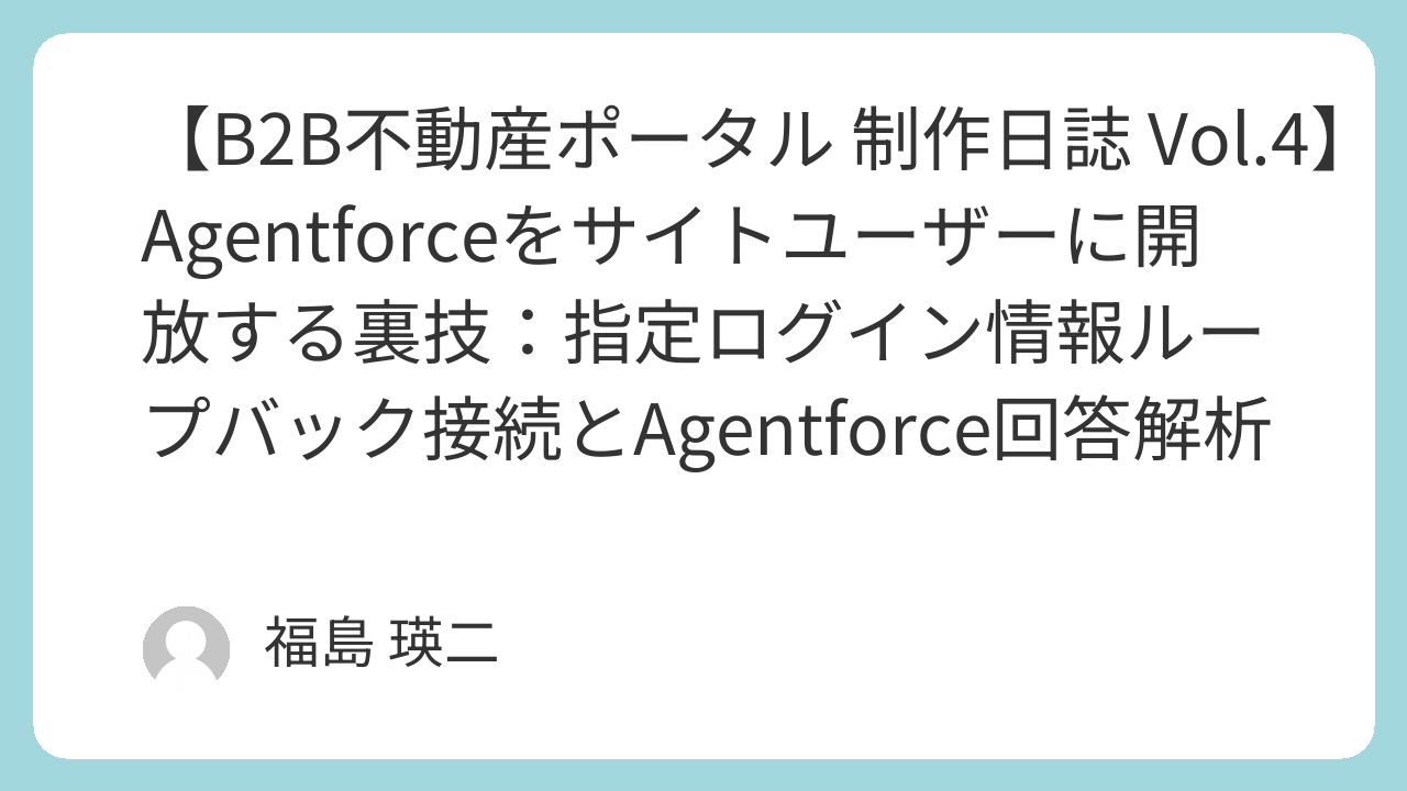 【B2B不動産ポータル 制作日誌 Vol.4】Agentforceをサイトユーザーに開放する裏技:指定ログイン情報ループバック接続とAgentforce回答解析