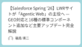 次回はこのサイトに 「AIエージェント(執事セバスチャン)」 を住まわせる、Agentforceの実装に挑戦します。お楽しみに。