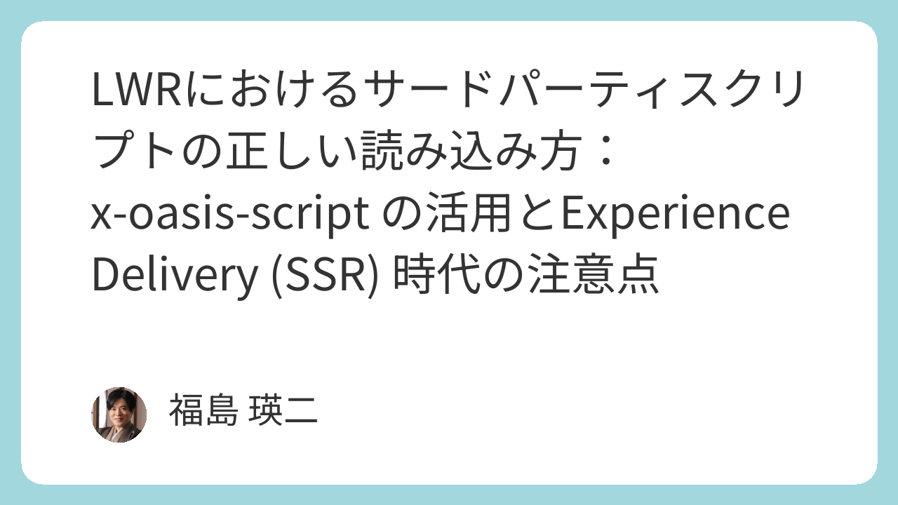 LWRにおけるサードパーティスクリプトの正しい読み込み方:x-oasis-script の活用とExperience Delivery (SSR) 時代の注意点