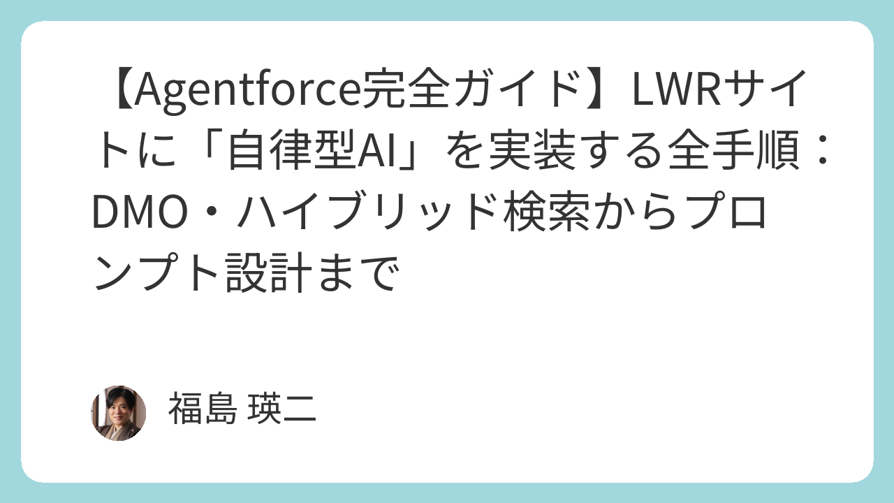 これが、LWR × Agentforce が実現する、次世代の顧客体験です。 一つ一つの設定は複雑ですが、このガイドを地図にして、ぜひ実装に挑戦してみてください。