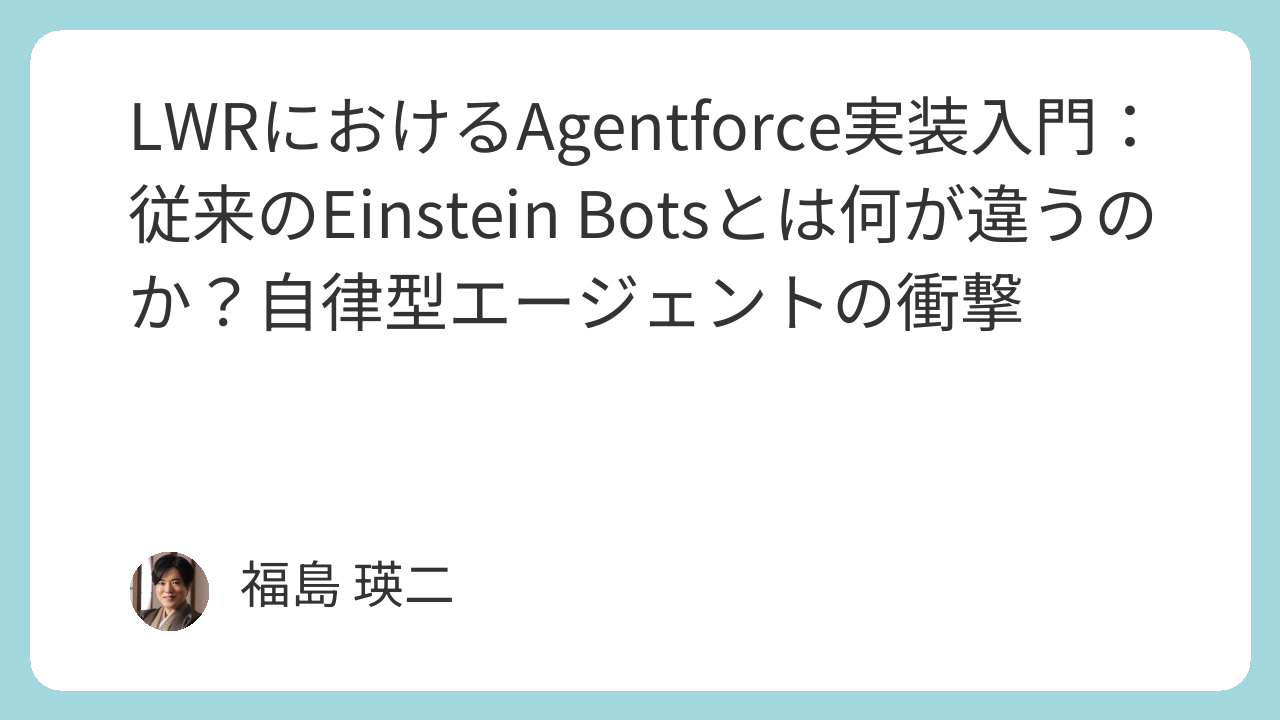 LWRにおけるAgentforce実装入門:従来のEinstein Botsとは何が違うのか?自律型エージェントの衝撃