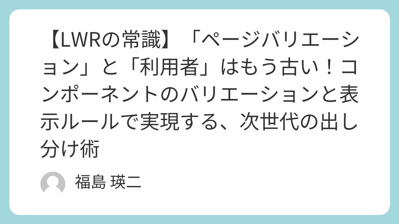 LWRサイトでのパーソナライゼーションは、「ページ」から「コンポーネント」へと主戦場が移りました。